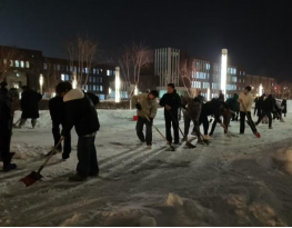 在公司领导的带领下,各党支部党员、新入团同学以及各班级员工踊跃参与,携带扫雪工具,对划分区域内的主要通行道路、台阶、出入口等积雪结冰严重路段进行了集中清理。尽管天气寒冷,但师生们热情高涨,团结协作,有序开展清扫工作,展现了高度的责任感与良好的精神风貌。