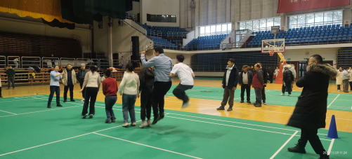 投壶项目中,参赛老师互相鼓励,心手准,夺得该项目第二名。在同心协力比赛中,杨宝震老师与万晓静老师默契配合,凭借娴熟的技术,在规定时间内全部接住12个羽毛球